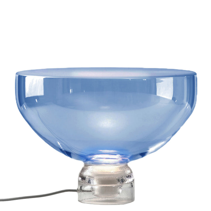 The top mouth-blown glass is available with glossy finish with a sandblasted flat surface in transparent clear, smoke grey, opaline, amber, red, orange, violet, light blue, and menthol glass. The base is available in clear transparent or dark transparent smoke grey glass in glossy or acid-etched. Cable colors are black, white, light grey & dark grey.