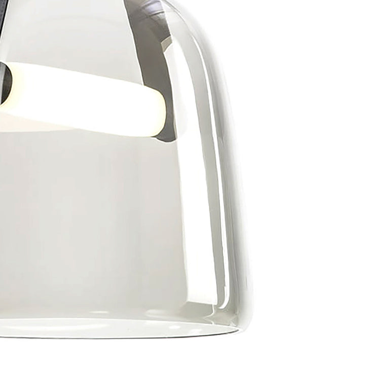 The "Mona" medium wall sconce in black transparent mouth-blown glass designed by Lucie Koldova is based on the concept of penetrating forms. The light source boldly traverses the ample volume of smooth glass to reveal the thrilling tension inherent in the design. The collection’s essence, however, lies in its unconventional construction and refined combination of materials. It also boasts dimmable tubular LED light sources, developed by BROKIS, each with a different colour temperature.